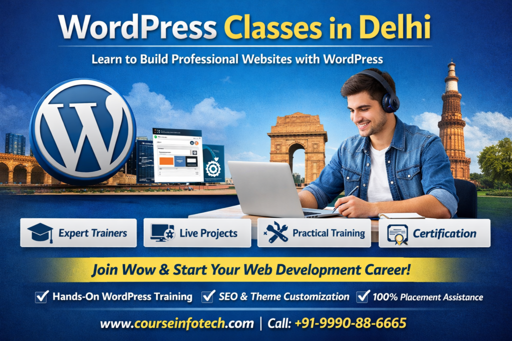 Looking for the best WordPress Classes in Delhi to start your web development career? Course Infotech offers professional WordPress training designed for beginners, students, and business owners who want to learn how to build modern websites.
